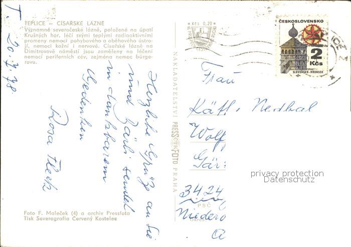 old postcard Teplice Cisarske Lazne postalisch gelaufen Erhaltung siehe scans