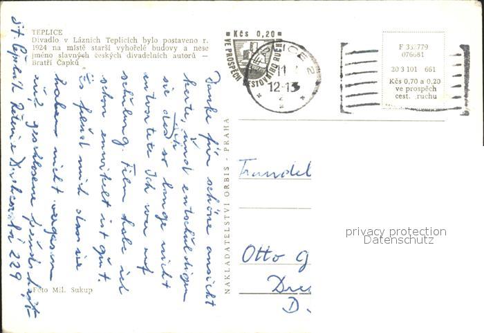 old postcard Teplice Divadlo Laznich Teplicich postalisch gelaufen Erhaltung siehe scans