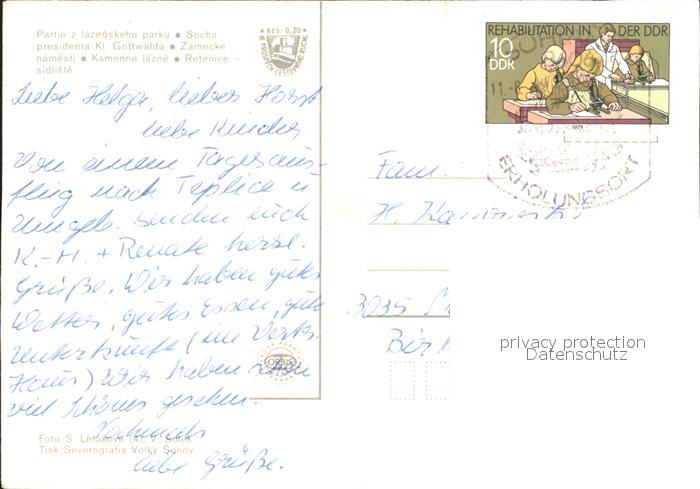 old postcard Teplice Lazenske Park Socha Kl. Gottwalda Zamecke namesti postalisch gelaufen Erhaltung siehe scans