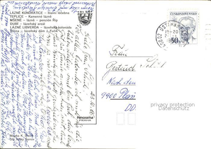 old postcard Teplice Msene Dubi Lazne-Libverda Lazne Kundratice postalisch gelaufen Erhaltung siehe scans