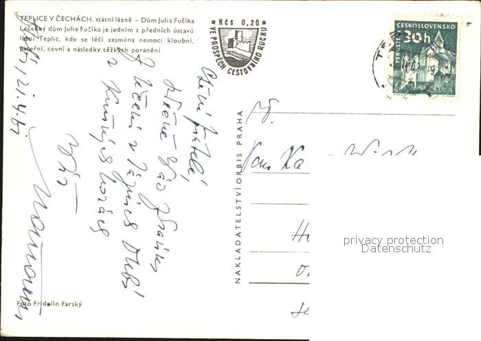 old postcard Teplice Statni lazne Dum Julia Fucika Lecebny postalisch gelaufen Erhaltung siehe scans
