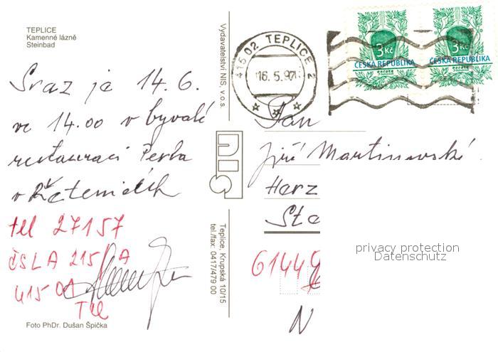 old postcard Teplice Steinbad postalisch gelaufen Erhaltung siehe scans [WerneD78]
