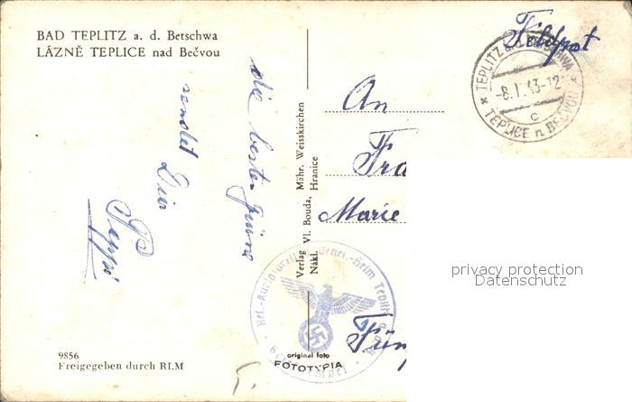 31881871 old postcard Teplitz-Schoenau Teplice Betschwa postalisch gelaufen KatCode: 11520
