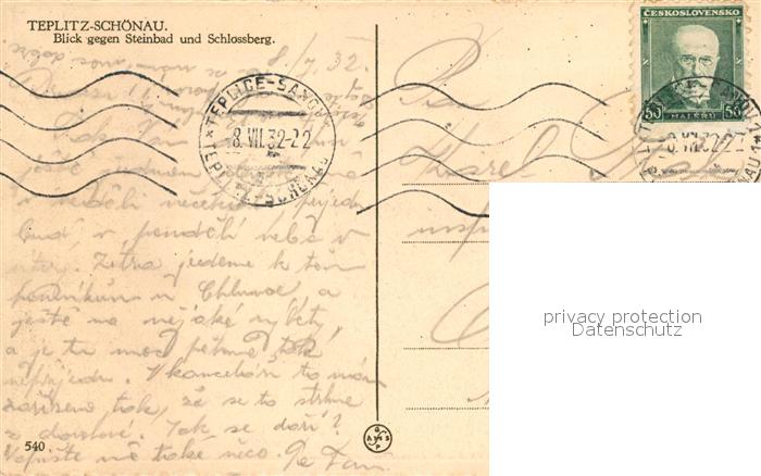 old postcard Teplitz-Schoenau Teplice Fliegeraufnahme Steinbad und Schlossberg postalisch gelaufen Erhaltung siehe scans [LiesaD40]
