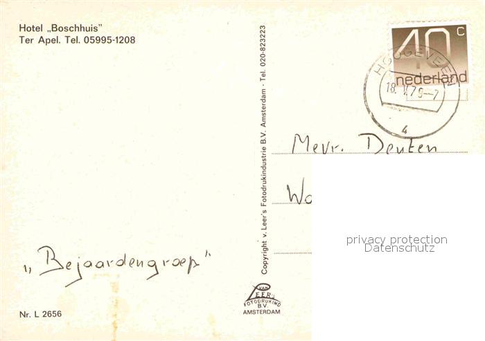 old postcard Ter Apel Hotel Boschhuis postalisch gelaufen Erhaltung siehe scans [NatalD47]