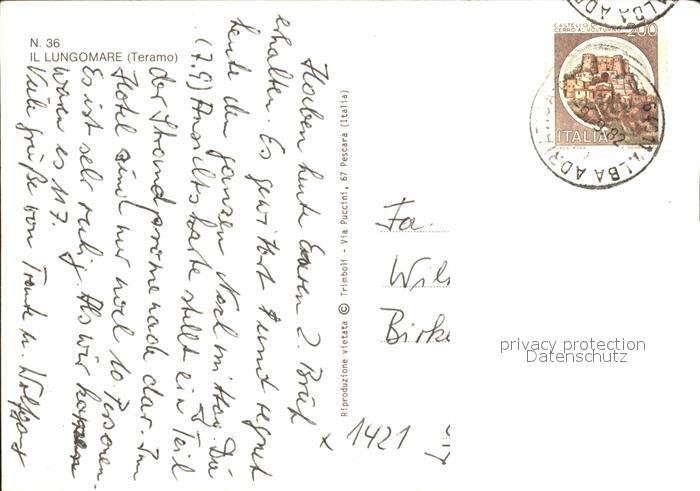 old postcard Teramo Lungomare Uferstrasse postalisch gelaufen Erhaltung siehe scans