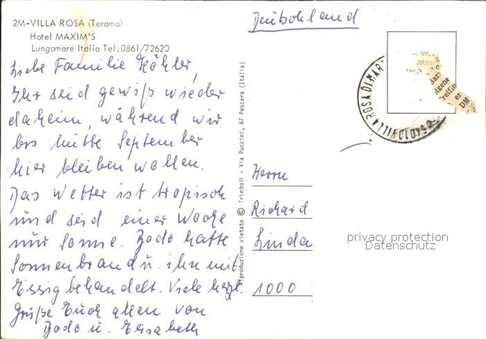 old postcard Teramo Villa Rose Hotel Maxims postalisch gelaufen Erhaltung siehe scans