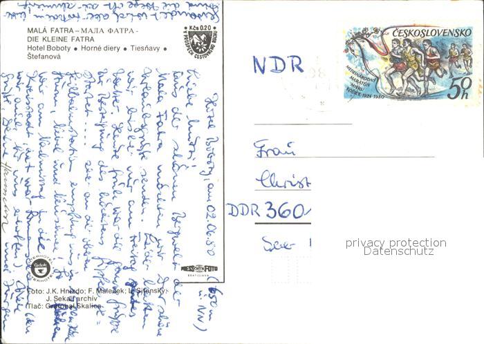 old postcard Terchova Hotel Boboty Kleine Fatra Enzian Wasserfall postalisch gelaufen Erhaltung siehe scans
