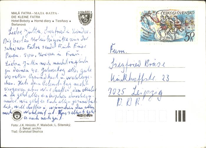old postcard Terchova Hotel Boboty Mala Fatra Horne Dierny Tiesnavy Stefanova Die kleine Fatra Wasserfall postalisch gelaufen Erhaltung siehe scans