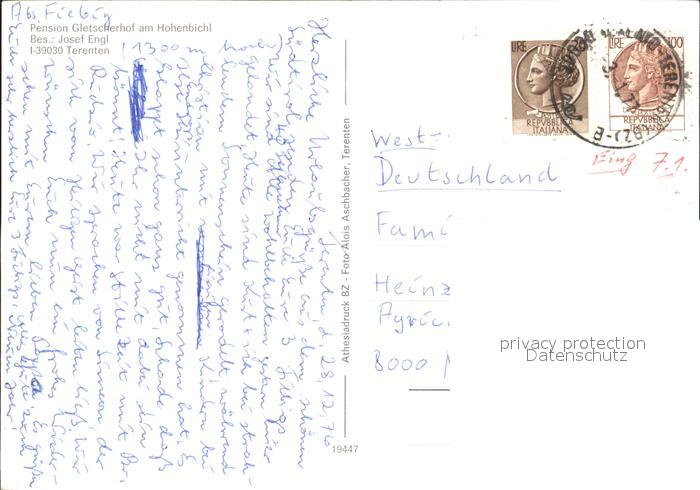 old postcard Terenten Vintl Suedtirol Pension Gletscherhof am Hohenbichl postalisch gelaufen Erhaltung siehe scans