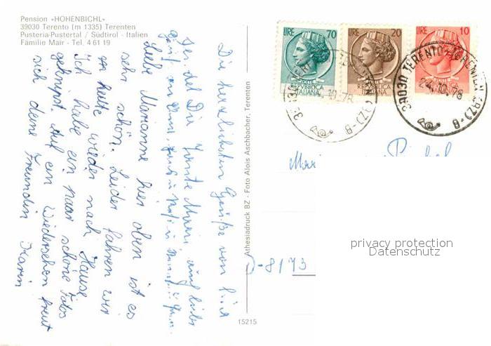 old postcard Terenten Vintl Suedtirol Pension Hohenbichl postalisch gelaufen Erhaltung siehe scans [WerneD78]