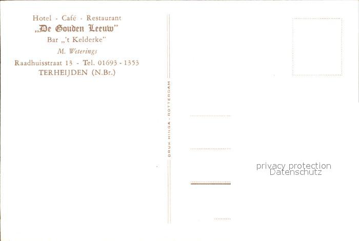 Terheijden Hotel Cafe Restaurant De Gouden Leeuw postalisch nicht gelaufen Erhaltung siehe scans