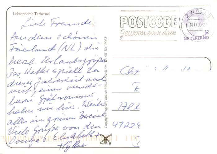 old postcard Terherne NL Fliegeraufnahme postalisch gelaufen Erhaltung siehe scans [WerneD78]