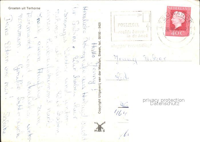 old postcard Terhorne Boote Hotel Schippershuis postalisch gelaufen Erhaltung siehe scans