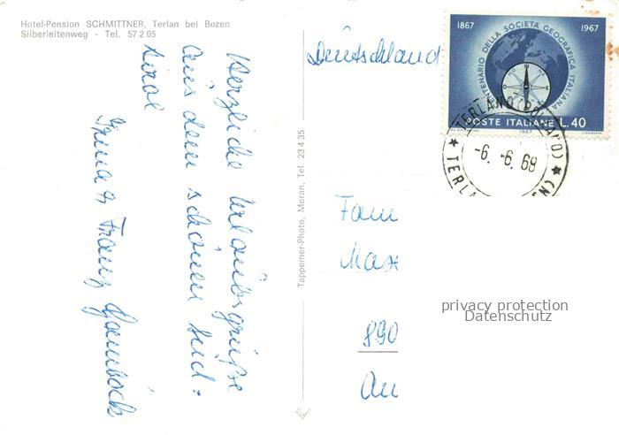 74079680 old postcard Terlan Terlano Suedtirol BOLZANO IT Hotel Pension Schmittner postalisch gelaufen Erhaltung siehe scans [WerneD78] KatCode: 11240