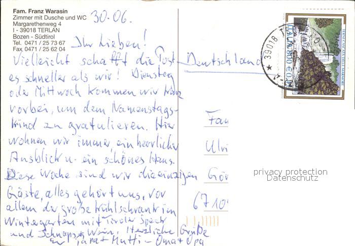 old postcard Terlano Suedtirol Pension Franz Warasin postalisch gelaufen Erhaltung siehe scans