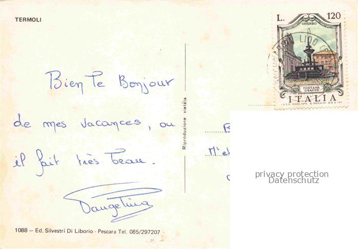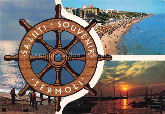 74088453 old postcard Termoli Campobasso Molise IT Panorama Strand Abendstimmung im Hafen Steuerrad postalisch gelaufen Erhaltung siehe scans [FriedD77] KatCode: 11240