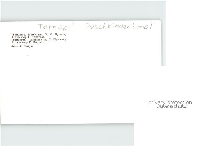Ternopil Puschkin Denkmal postalisch nicht gelaufen Erhaltung siehe scans