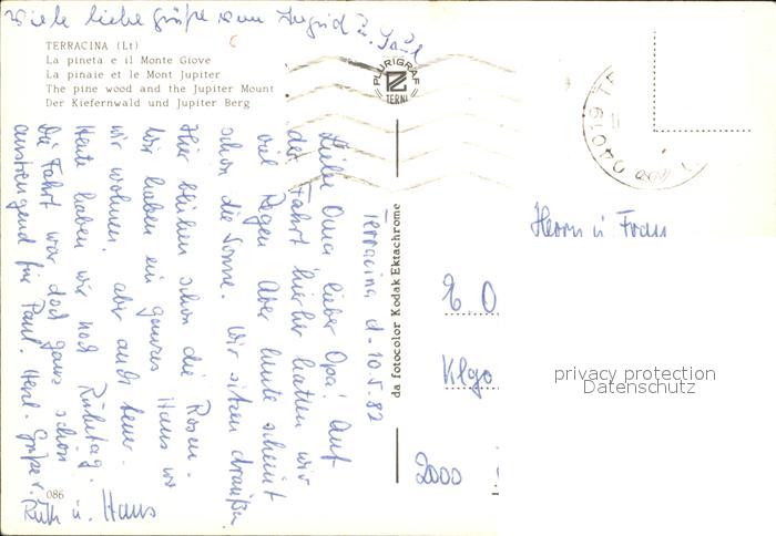 old postcard Terracina Kiefernwald und Berg Jupiter postalisch gelaufen Erhaltung siehe scans