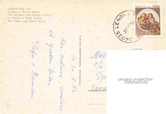 74028791 old postcard Terracina Lazio IT Il porto e Monte Giove postalisch gelaufen Erhaltung siehe scans [FriedD77] KatCode: 11240
