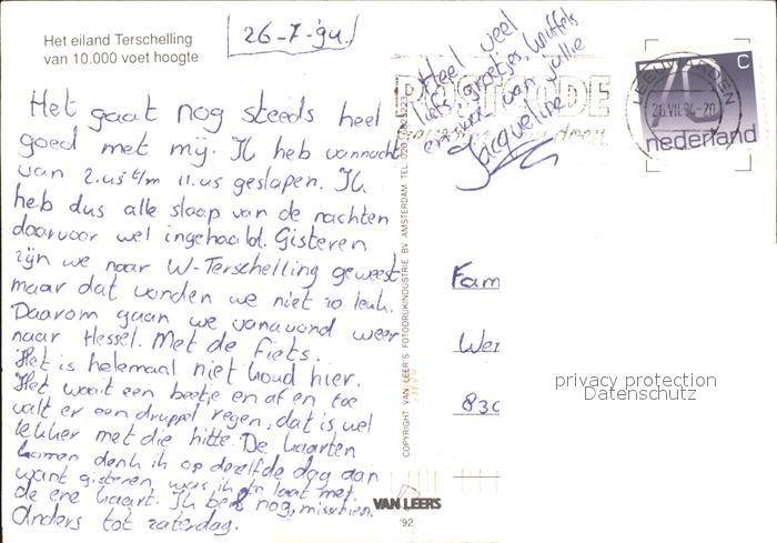 old postcard Terschelling Fliegeraufnahme Insel postalisch gelaufen
