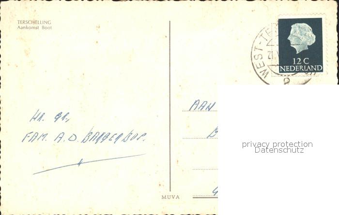 old postcard Terschelling Schiff Friesland postalisch gelaufen Erhaltung siehe scans