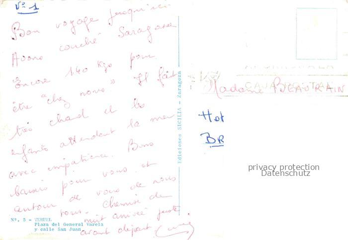 74034283 old postcard Teruel ES Plaza del General Varela y Calle San Juan postalisch gelaufen Erhaltung siehe scans [FriedD77] KatCode: 11510