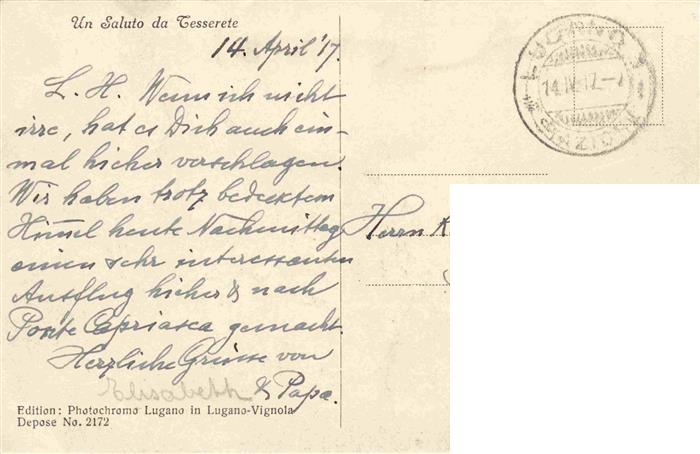 13974460 alte Postkarte Tesserete TI Veduta verso Sala postalisch gelaufen Erhaltung siehe scans [FriedD77] KatCode: 11470210660092