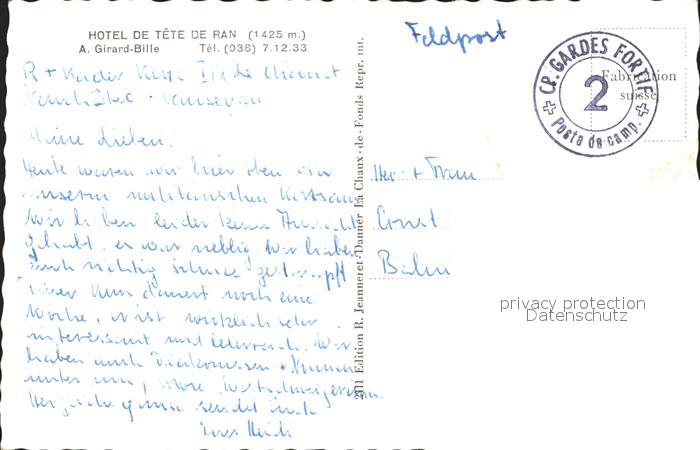 11736133 alte Postkarte Tete de Ran Hotel postalisch gelaufen KatCode: 11470390295308