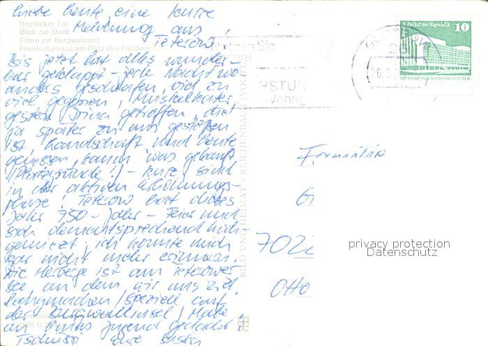 72135926 alte Postkarte Teterow Mecklenburg Vorpommern Rostocker Tor Faehre Burgwallinsel Kreiskulturhaus Platz des Friedens postalisch gelaufen Erhaltung siehe scans KatCode: 11110013053087