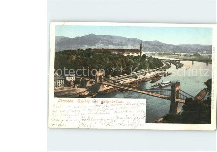 Tetschen-Bodenbach Boehmen Schloss und Kettenbrücke Elbe Bahnpost