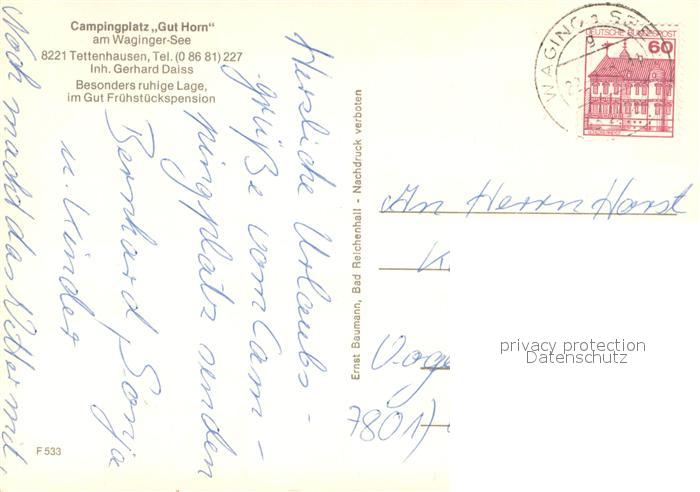 73722243 alte Postkarte Tettenhausen Campingplatz Gut Horn See postalisch gelaufen Erhaltung siehe scans [LiesaD40] KatCode: 11110009189162