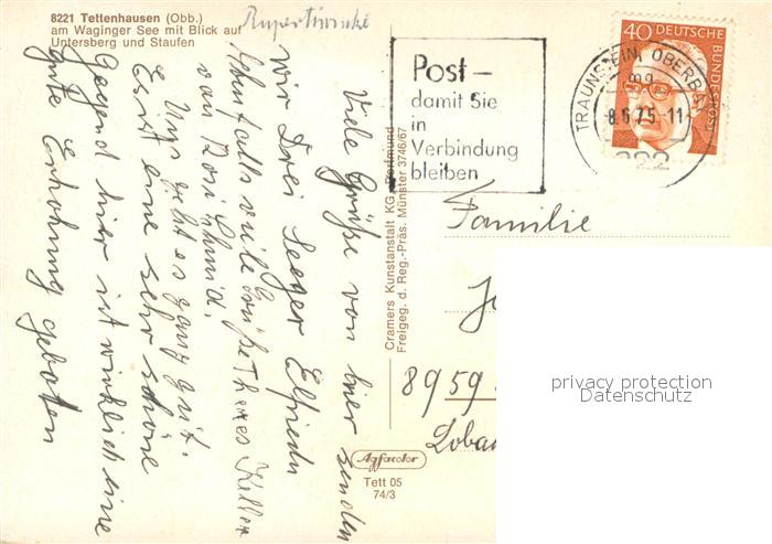 73644781 alte Postkarte Tettenhausen Fliegeraufnahme mit Waginger See mit Blick auf Untersberg und Staufen postalisch gelaufen Erhaltung siehe scans [WerneD78] KatCode: 11110009189162