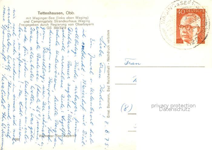73644780 alte Postkarte Tettenhausen Fliegeraufnahme mit Waginger See und Campingplatz Strandkurhaus postalisch gelaufen Erhaltung siehe scans [WerneD78] KatCode: 11110009189162