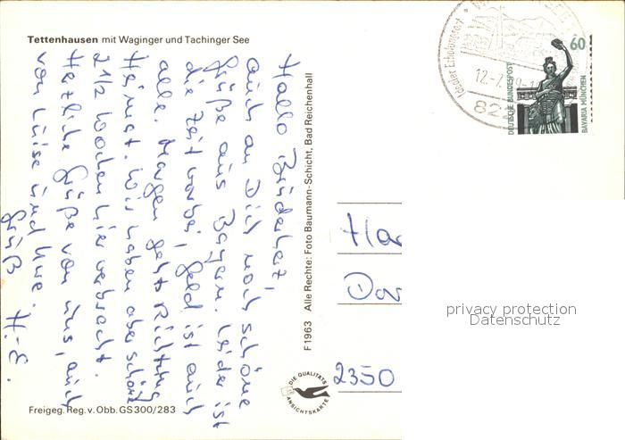 72534340 alte Postkarte Tettenhausen Fliegeraufnahme mit Waginger und Tachinger See postalisch gelaufen Erhaltung siehe scans [LiesaD40 kt120box] KatCode: 11110009189162