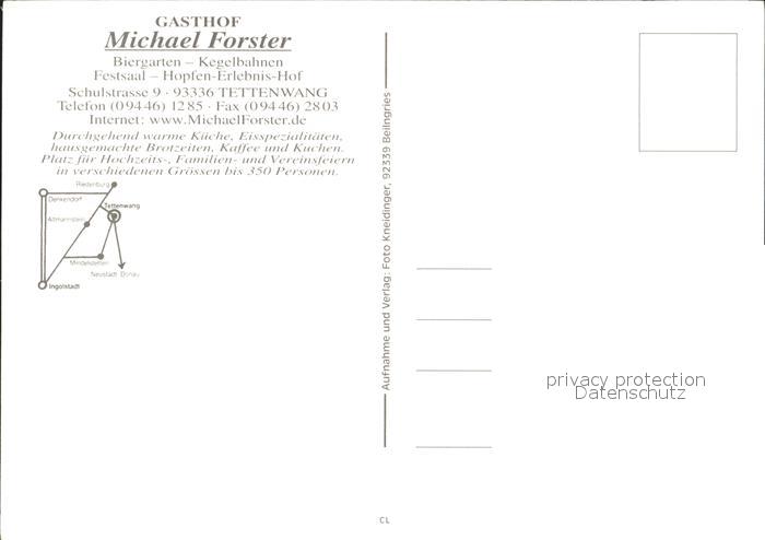 72233331 Tettenwang Altmuehl Gasthof Michael Forster postalisch nicht gelaufen Erhaltung siehe scans KatCode: 11110009176112