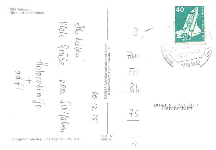 34145648 alte Postkarte Tettnang Bodenseekreis BW Fliegeraufnahme postalisch gelaufen Erhaltung siehe scans [WerneD78] KatCode: 11110008435057