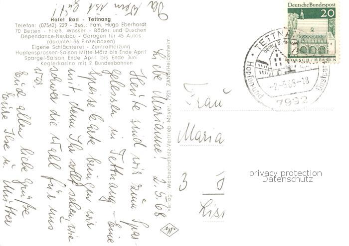 73811026 alte Postkarte Tettnang Hotel Rad Restaurant Fachwerkhaus postalisch gelaufen Erhaltung siehe scans [FriedD77] KatCode: 11110008435057