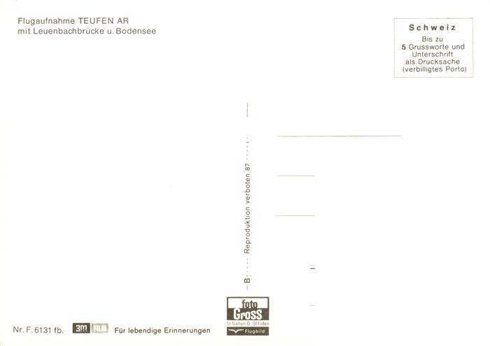 13920061 Teufen AR Fliegeraufnahme mit Leuenbachbruecke und Bodensee postalisch nicht gelaufen Erhaltung siehe scans [WerneD78] KatCode: 11470020065556