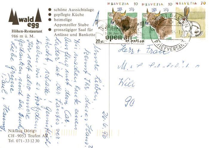 13926236 alte Postkarte Teufen AR Waldegg Hoehen Restaurant postalisch gelaufen Erhaltung siehe scans [FriedD77] KatCode: 11470020065556