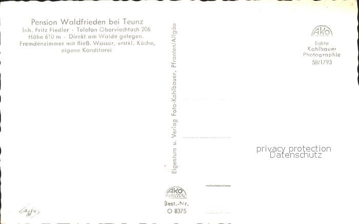 41789879 Teunz Pension Waldfrieden postalisch nicht gelaufen Erhaltung siehe scans KatCode: 11110009376171