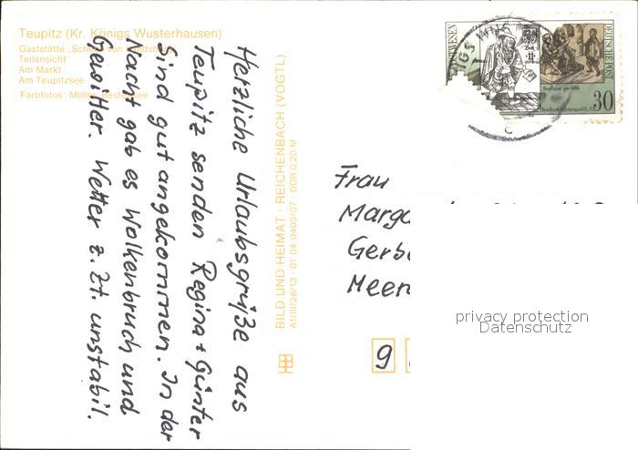 72382703 alte Postkarte Teupitz Markt Teupitzsee Gaststaette Schenk von Landsberg postalisch gelaufen Erhaltung siehe scans KatCode: 11110012061492