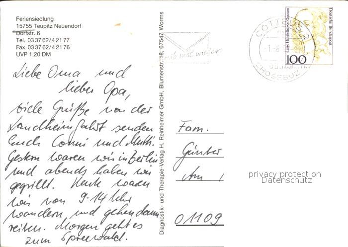 72557198 alte Postkarte Teupitz Neuendorf Feriensiedlung postalisch gelaufen Erhaltung siehe scans [KathaD79] KatCode: 11110012061492