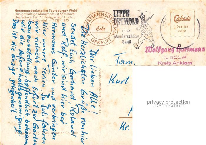 73091647 alte Postkarte Teutoburgerwald Fliegeraufnahme Hermannsdenkmal postalisch gelaufen Erhaltung siehe scans [KathaD81] KatCode: 11110005766020