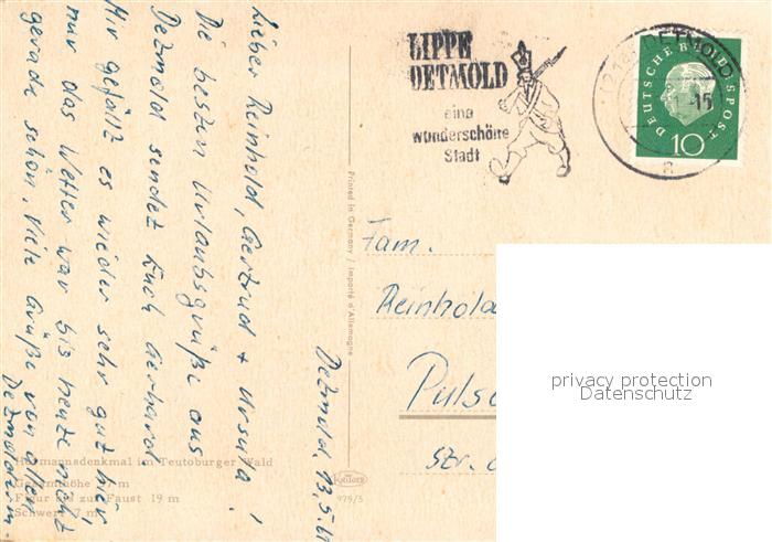 73674036 alte Postkarte Teutoburgerwald Hermannsdenkmal postalisch gelaufen Erhaltung siehe scans [WerneD78] KatCode: 11110005766020