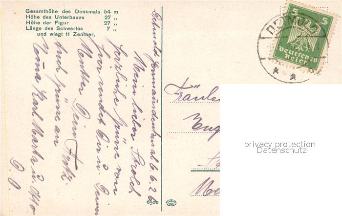 43348263 alte Postkarte Teutoburgerwald Hermannsdenkmal postalisch gelaufen Erhaltung siehe scans [WerneD78] KatCode: 11110005766020