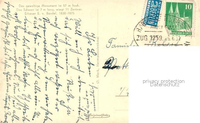 73158092 alte Postkarte Teutoburgerwald Hermannsdenkmal postalisch gelaufen Bahnpost Erhaltung siehe scans [WerneD78] KatCode: 11110005766020