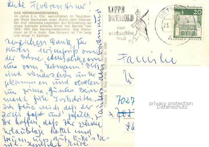 73607840 alte Postkarte Teutoburgerwald Hermannsdenkmal Fliegeraufnahme postalisch gelaufen Erhaltung siehe scans [WerneD78] KatCode: 11110005766020