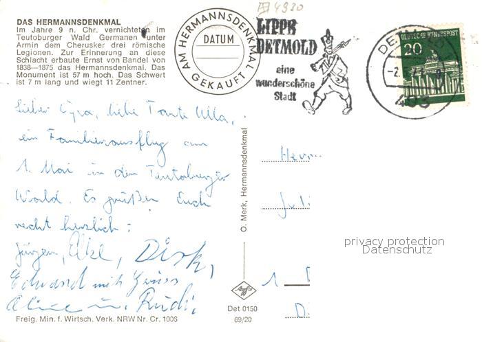 73333195 alte Postkarte Teutoburgerwald Hermannsdenkmal Fliegeraufnahme postalisch gelaufen Erhaltung siehe scans [WerneD78] KatCode: 11110005766020