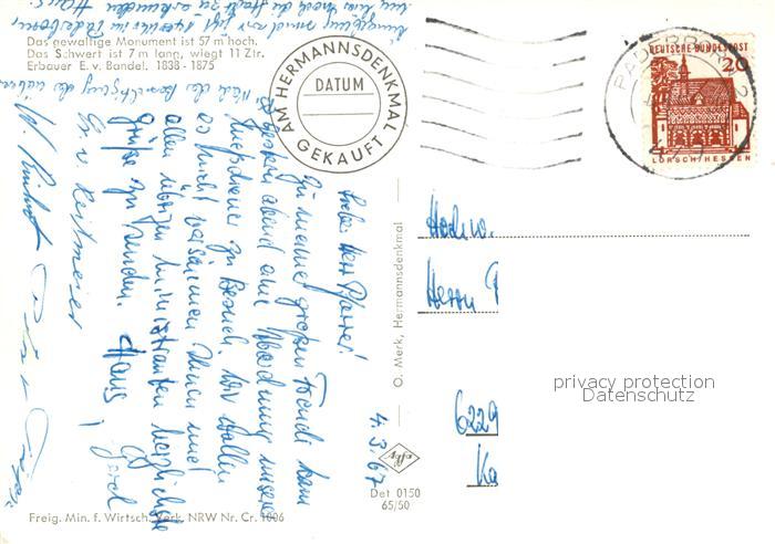 73108855 alte Postkarte Teutoburgerwald Hermannsdenkmal Fliegeraufnahme postalisch gelaufen Erhaltung siehe scans [WerneD78] KatCode: 11110005766020